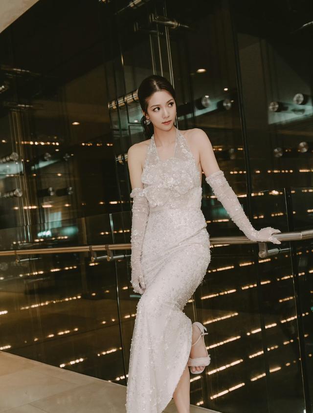 只见当天的陈晓华穿着一身深色的礼服,礼服的抹胸和开衩设计都很好的展现了陈晓华的身材优势,她的发型没有做特别的设计,只是披散在肩头,看起来尽显少女感。