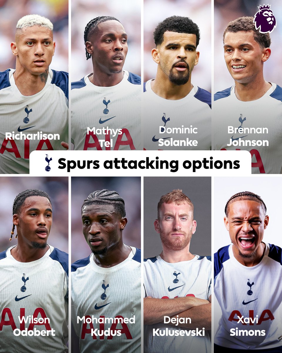 他们分别是:里沙利松、马蒂斯-特尔、索兰克、布伦南-约翰逊、奥多贝尔、库杜斯、库卢塞夫斯基,以及刚刚从莱比锡转会加盟的哈维-西蒙斯。