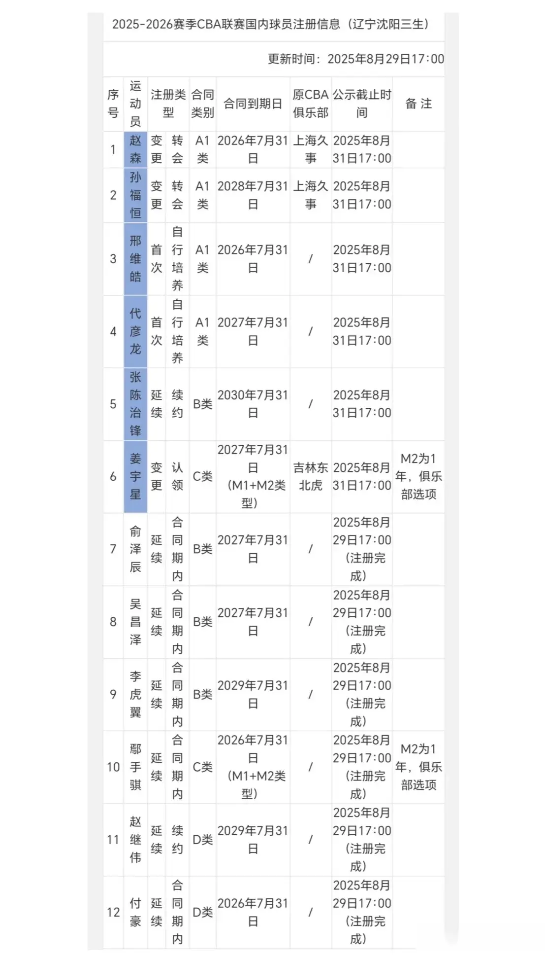 以上12名球员,在上个赛季大多数是辽篮的主力球员或者个别替补球员 。
